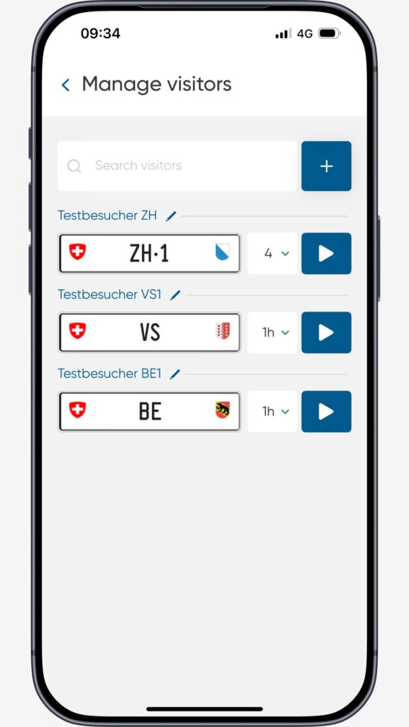 Enter licence plates for visitors or customers – hourly, daily, retroactively or permanently. This ensures that authorised vehicles can park without any issues during the selected period.
